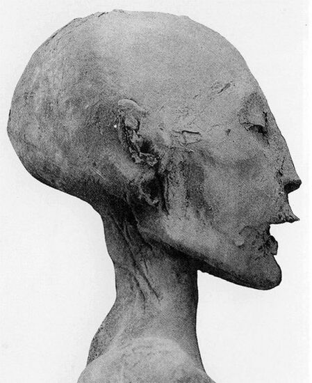 Не идентифицированные 2 черепа и рука, лежавшая над мумией «Младшей леди» (англ. Younger Lady).