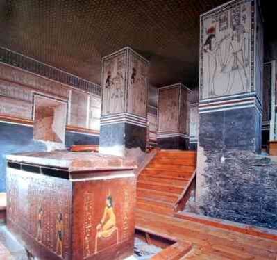 - (f) мужская мумия в ладье, возможно, фараон Сетнахт. Украдено или уничтожено тело в начале XX века.