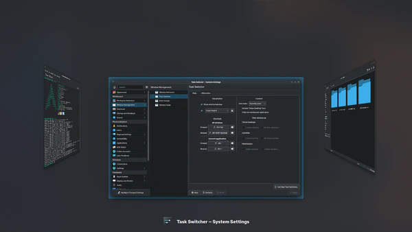 KWin можно настроить с помощью скриптов, используя QML или QtScript, оба из которых основаны на ECMAScript[5].
