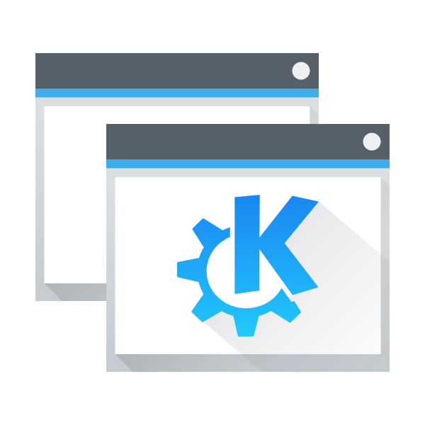 Существует много тем оформлений для KWin, включая текущий стандартный Breeze (показан ниже), предыдущий стандартный Oxygen, Microsoft Windows-подобный Redmond и Keramik.