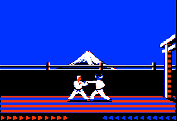 Игровой интерфейс представляет собой вид сбоку на двух дерущихся, что очень похоже на платформер. Герой и его противник могут наносить по три разных удара рукой и ногой. В первой версии для Apple II высота наносимых ударов контролировалась с помощью джойстика, а тип удара (рукой или ногой) выбирался нажатием одной из двух кнопок джойстика, либо с помощью клавиатуры, и тогда каждой высоте удара соответствует своя клавиша. Для входа в боевую стойку и/или выхода из неё используется клавиша Space. Для нанесения ударов используются клавиши Q, W, A и S.