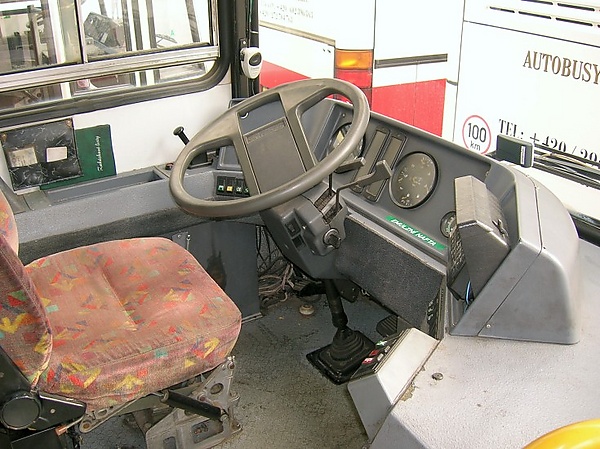 Кабина водителя отделена от пассажирского салона стеклянной перегородкой. Напротив средней двери присутствует место для колясок.