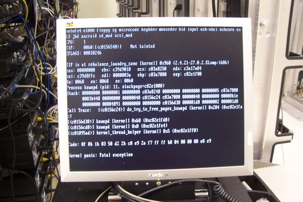 - GNU/Linux и большинство других UNIX-совместимых операционных систем создают лог с описанием ошибки и выводят на экран сообщение об ошибке, содержащее информацию, необходимую для отладки и поиска причин этой ошибки. Этот механизм носит название Linux oops. В современных дистрибутивах Linux используется графический сервер X Window, и Kernel panic не приводит к переключению на физическую консоль, на которую выводятся диагностические сообщения. Распознать Kernel panic можно по мигающим светодиодам Caps Lock и Scroll Lock на клавиатуре[16].