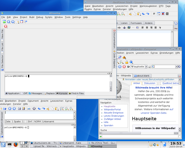 Kubuntu (произносится «кубу́нту») — производный от Ubuntu Дистрибутив Linux. Kubuntu использует графическое окружение KDE вместо стандартного для Ubuntu GNOME. Слоган проекта Kubuntu — «Дружественные вычисления» (англ. Friendly Computing)[3]. Разрабатывался и поддерживался компанией Canonical Ltd. до версии 12.04. Проект является частью проекта Ubuntu и использует его основу. Есть возможность установить как графическое окружение KDE (пакет kubuntu-desktop), так и окружение GNOME (пакет ubuntu-desktop) одновременно, выбирая окружение для работы при запуске системы. Все операционные системы из проекта Ubuntu, в том числе и Kubuntu, имеют общий репозиторий пакетов[4]. Операционная система обновляется каждые полгода, синхронно с Ubuntu[5].