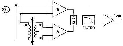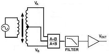Два возможных принципа обработки сигнала LVDT показаны на рисунках. Частота возбуждения обычно единицы килогерц.