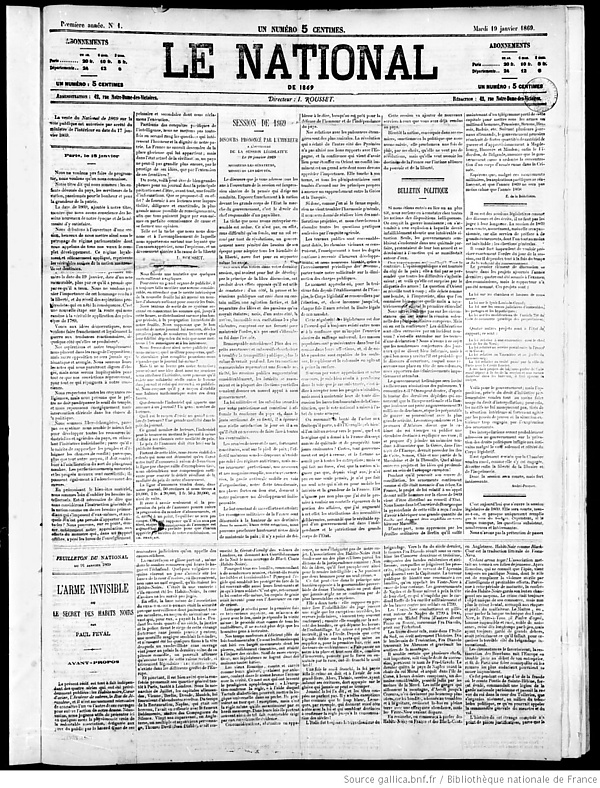 Запрещенная после переворота 2 декабря 1851 года газета перестала выходить 31 декабря того же года. Последнего владельца звали Ernest Caylus (1813—1878).
