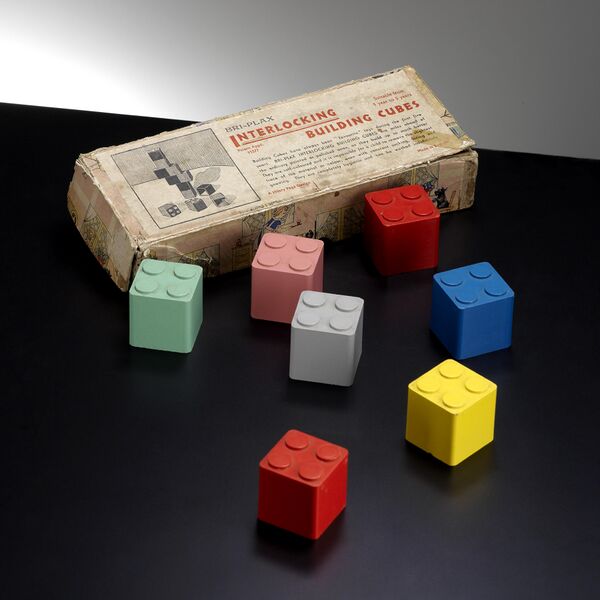 - 1949 — появление пластмассовых защёлкивающихся кубиков. Размеры их выверены таким образом, что кубики можно надёжно соединять между собой не только сверху, но и с боков.