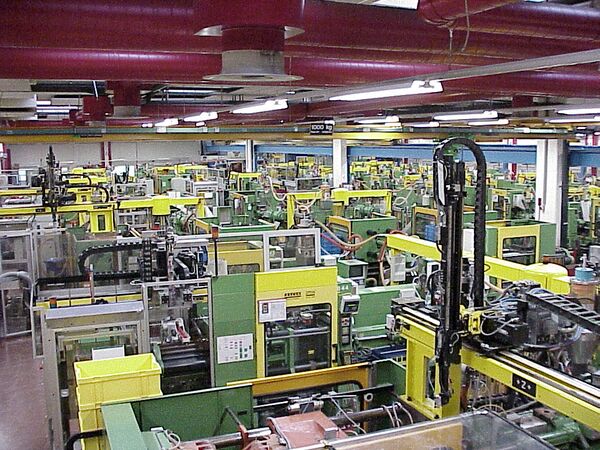 - Главный завод в Биллунде (Дания), где в цехах длиной до полукилометра стоят ряды автоматов, штампует около 21 млрд кубиков в год. На это уходит порядка 60 тонн пластика в день.