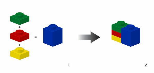 Детали Lego всех разновидностей составляют универсальную систему. Несмотря на изменения в дизайне и назначении отдельных предметов на протяжении многих лет, каждый предмет остаётся каким-то образом совместимым с существующими предметами. Кубики Lego 1958 года по-прежнему взаимосвязаны с теми, которые производятся в настоящее время, а наборы Lego для маленьких детей совместимы с наборами, созданными для подростков. Шесть кирпичей 2×4 шипа[30] можно комбинировать 915 103 765 способами[31].