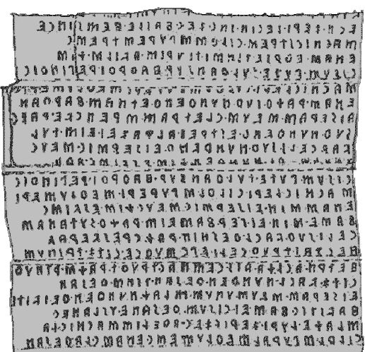 В 1891 году обёрточный материал мумии был доставлен в Вену, где его изучил эксперт по коптскому языку Якоб Кралл, который ожидал, что текст написан на коптском, ливийском или карийском языке. Он был первым, кто установил, что надписи были сделаны на этрусском языке.
