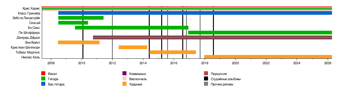 - Крис «Лорд» Хармс (Chris «Lord» Harms) — вокал, гитара, виолончель (с 2007 года)