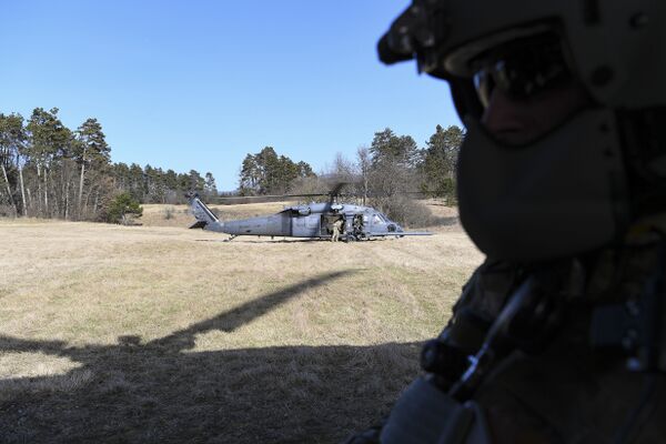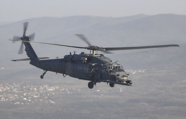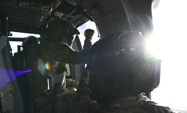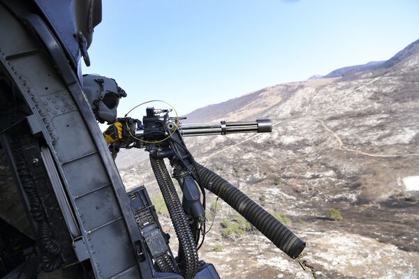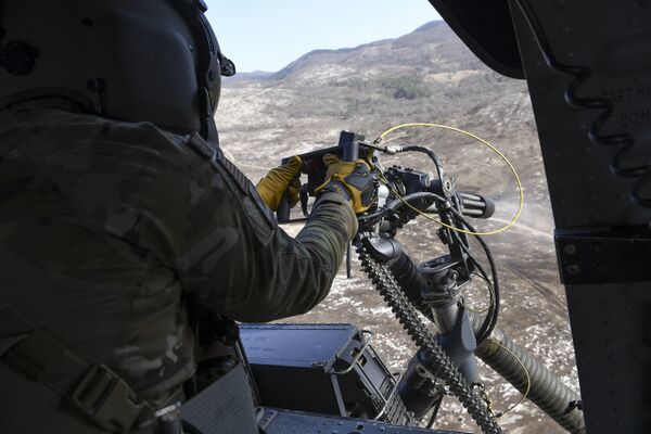 Вертолёт HH-60G Pave Hawk с пулемётом GAU-2B/A в полёте возле авиабазы Авиано, 25 февраля 2021