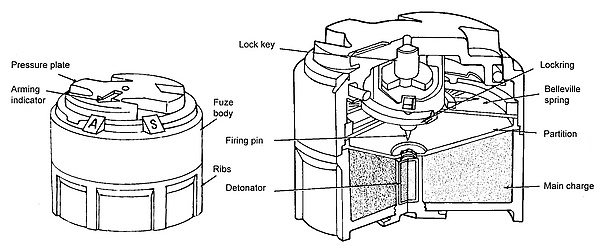 Мина M14 противопехотная фугасная нажимного действия. Устанавливаемая только вручную. Предназначена для выведения из строя личного состава противника. Поражение наносится за счет ранения нижней части ноги при соприкасании с нажимной крышкой мины, что приводит к её подрыву.