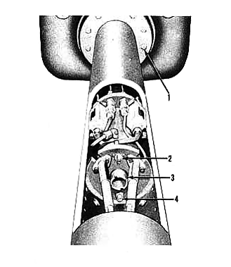 Управление поворотом танка осуществлялось при помощи штурвала. Все приводы управления трансмиссией снабжались гидросервоприводами, за исключением остановочных тормозов, управлявшихся от педали через простой механический привод[46].