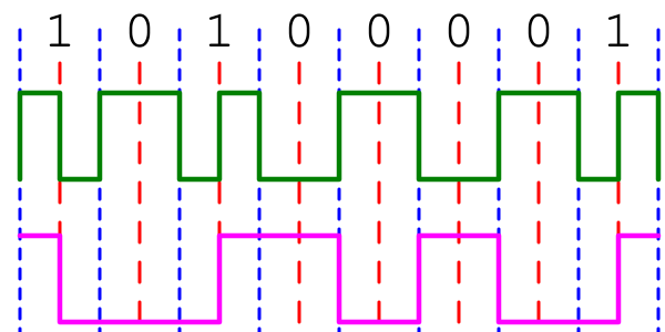 - В протоколах передачи цифровых данных по каналу связи на физическом уровне
