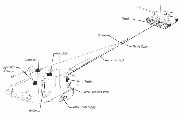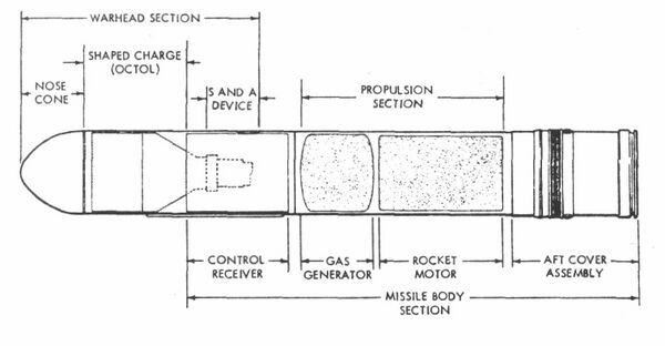 Базовая система была достаточно передовой на то время. Тело ракеты представляло собой длинную трубу со стабилизаторами которые выдвигались назад из сложенного положения. После выхода из дула пушки стабилизаторы выдвигались и запускался маршевый двигатель. Для предотвращения вращению во время движения по каналу ствола, в нарезной паз пушки вставлялся маленький «ключ». Наведение ракеты было простым; наводчик удерживал свой прицел на цели, в то время электроника в системе прицеливания следила оптически за ракетой и отсылала корректировки через ИК-канал связи. В основном процент попадания был большим.