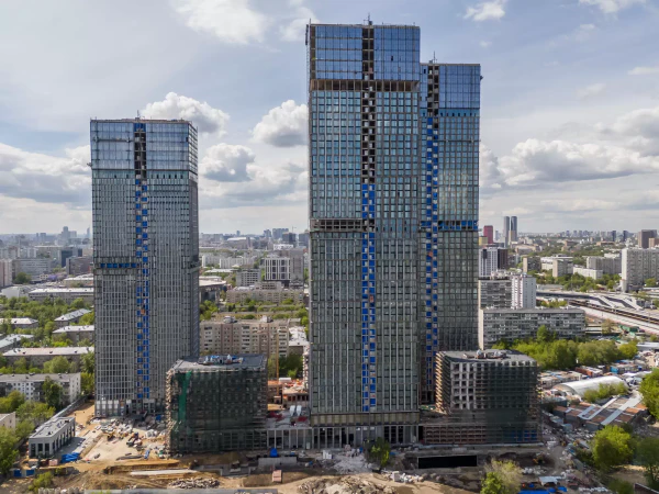 Авторы называют этот проект манифестом модернистских принципов в архитектуре. Жилая часть комплекса будет состоять из трех высотных башен и двух клубных домов средней этажности. В отличие от лаконичных высоток, они имеют сложный объём и необычные фасады из алюминия, анодированного под золото и бронзу.