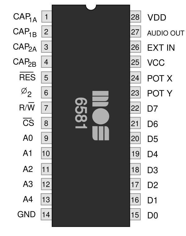 - 6581 R2 — имеет обозначение «MOS» «6581» на корпусе микросхемы