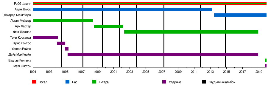 - Робб Флинн — вокал, гитара (ранее в Vio-lence, Forbidden) (1991—наши дни)
