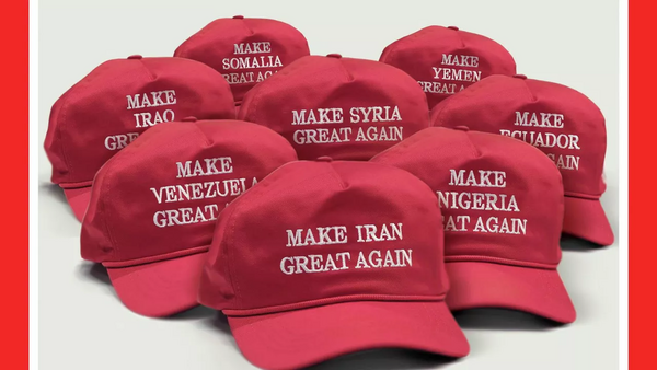 В марте 2026 года журнал Time опубликовал обложку с восьмью кепками в стиле лозунга Трампа Make America Great Again, на которых вместо слова Америка были написаны названия восьми стран, где Вашингтон инициировал военные операции с момента возвращения Трампа на пост президента: Венесуэла, Иран, Ирак, Йемен, Нигерия, Сирия, Сомали и Эквадор[12]. В материале говорилось[13]: