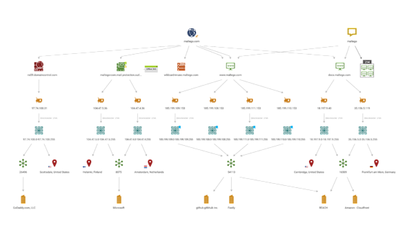 Maltego — программное обеспечение [1], используемое для разведки и криминалистики с открытым исходным кодом, разработанное компанией Paterva [2] из Претории, Южная Африка. Maltego фокусируется на предоставлении зависимостей и обнаружении данных из открытых источников и визуализации этой информации в графическом формате, подходящем для ручного анализа связей, а также датамайна. С 2019 года команда Maltego Technologies со штаб-квартирой в Мюнхене, Германия, взяла на себя ответственность за все глобальные операции с клиентами. [3]