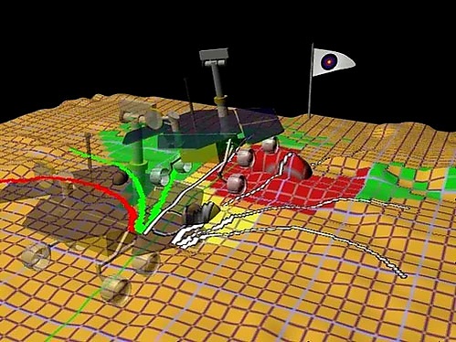 Когда роверу дают команду на самостоятельное передвижение, он начинает анализировать близлежащую местность, после этого делает стереоизображения, с помощью которых выбирает наилучший безопасный маршрут. Марсоходам необходимо избегать любых препятствий на своем пути, поэтому роверы распознают их на своих стереоснимках. Эта инновация позволила передвигаться на более дальние расстояния, чем при ручной навигации с Земли. По состоянию на середину августа 2004 года марсоход «Оппортьюнити», используя автоматическую самонавигацию, проехал 230 метров (треть расстояния между кратером Игл и кратером Выносливость), марсоход Спирит — более 1250 метров, из запланированных 3000 метров езды к «Холмам Колумбии».[14]