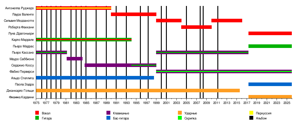 - Пьеро Кассано — клавишные, гитара, вокал (1975—1981, 1999—2017)