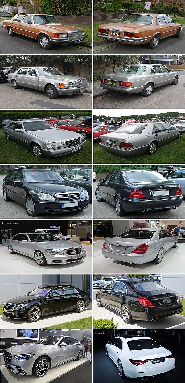 Помимо седанов, в состав серии также входят купе и кабриолеты[7]. Кроме того, на базе S-класса созданы роскошные автомобили Mercedes-Maybach и лимузины Mercedes-Maybach Pullman. В 1998 году для купе S-класса был выделен отдельный CL-класс, однако в июне 2014 года компания вновь вернулась к оригинальной линейке. В 2016 году была представлена первая модификация в кузове кабриолет[8].