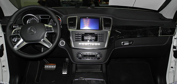 Концепция управления системами автомобиля и отображения различной информации была специально разработана для повышения удобства эксплуатации новой модели. Приборная панель оснащена современными приборами, включая два круглых циферблата и большой (11,4 см) дисплей, расположенный между ними. В центре панели может быть установлена доступная на заказ мультимедиа система COMAND с большим цветным дисплеем. По бокам от неё располагаются дефлекторы отопительной системы. Рычаг управления круиз-контролем был перемещён ниже от его первоначального расположения в предшествующей модели. Информационные, навигационные и коммуникационные системы интуитивно понятны и просты в эксплуатации благодаря металлическому контроллеру, расположенному на центральной консоли. Вертикальные прямоугольные воздушные отверстия по обе стороны от большого экрана подчёркиваютт функциональные аспекты автомобилей класса SUV. Центральная консоль включает в себя подлокотник со встроенным подручником, в передней части которого расположен контроллер и различные переключатели, среди которых режимы работы подвески. Передние сиденья могут быть отрегулированы на 350 миллиметров в длину и более чем на 90 миллиметров в высоту[4].
