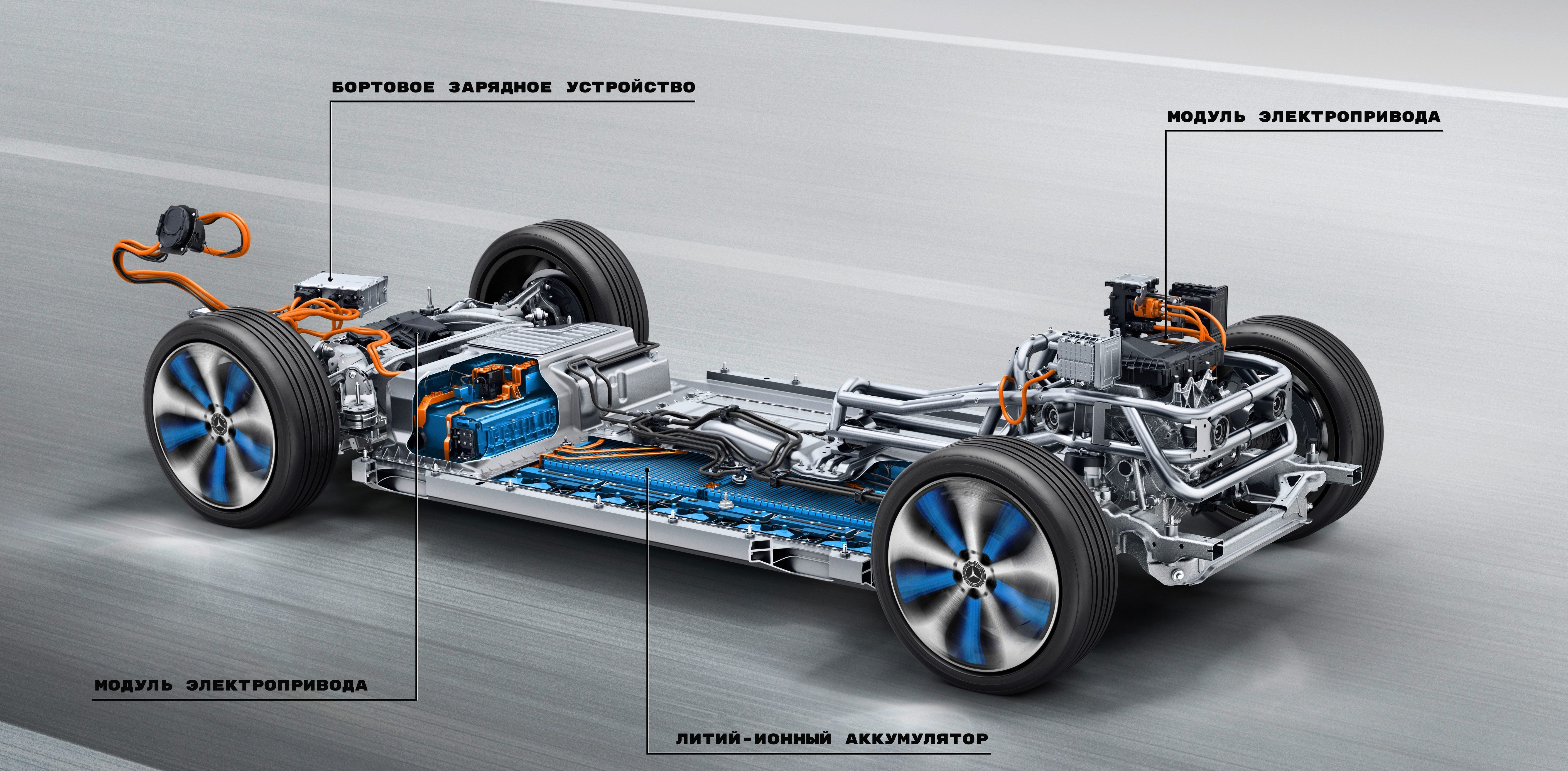 Стокилограммовые аккумуляторные блоки для электромобилей EQ производит компания Accumotive, являющейся дочерней Mercedes-Benz Group, в Каменце[3]. Она применяет Литий-ионные аккумуляторные ячейки, в основном закапающиеся у южнокорейских производителей. С 2021 года Mercedes-Benz работает над твёрдотельным аккумулятором[4].