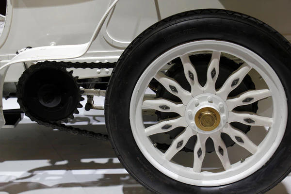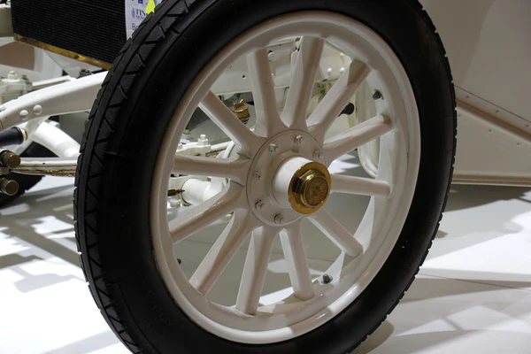 Оригинальные колёса автомобиля 1902 года были сделаны из дерева с металлическими ободами и оснащались пневматическими шинами с шариковыми подшипниками в ступицах[37]. Их дизайн был позаимствован у предшественника — те же 12 несъёмных спиц.