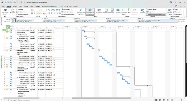 | Интерфейс | Графический, основанный на ленте Office, с поддержкой диаграмм Ганта, сетевого планирования, ресурсов и временных шкал | ||