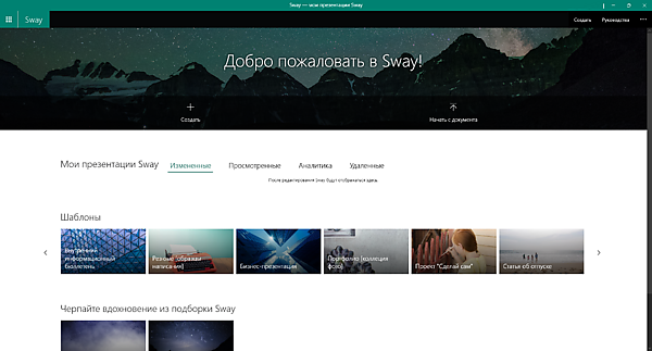 - 2025 год — Sway продолжает поддерживаться как часть Microsoft 365, хотя его функционал постепенно уступает место другим инструментам визуализации.