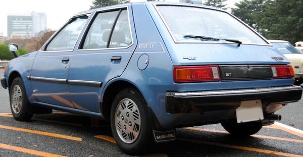 Mitsubishi Mirage — субкомпактный автомобиль, выпускавшийся компанией Mitsubishi Motors с 1978 по 2002 г[5], а также возродилось производство с 2012 года. Mitsubishi Mirage в кузовах хэтчбек, выпущенные между 1987 и 2002 г. классифицировались как малолитражные автомобили, в то время как кузов седан и универсал наряду с Mitsubishi Lancer входил в компактный класс. Кузов хэтчбек был представлен в 1988 году и дополнил уже существующий кузов седан в виде рестайлинга. Кузов купе появился на свет в 1991 году и так же входил в субкомпактный класс. Модель малолитражки Mitsubishi Mirage полностью заменила Mitsubishi Colt и продавалась в период с 2002 по 2012 г.