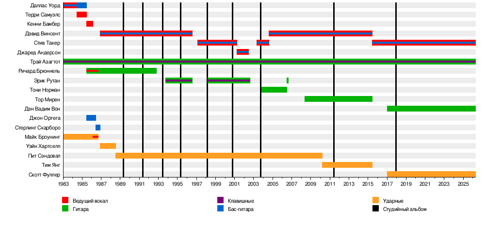 - Трэй Азагтот (George Emmanuel III) — гитара, клавишные (с 1983)