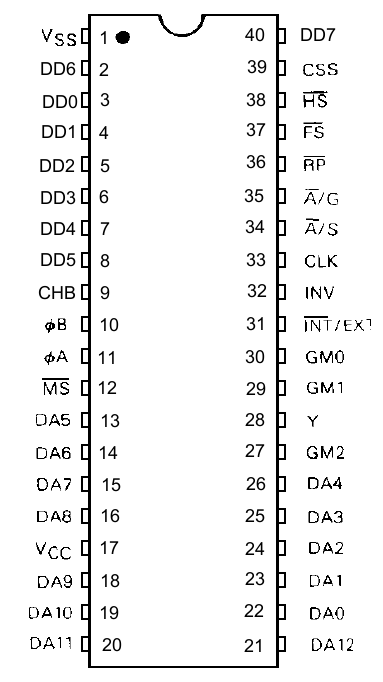 Микросхема выполнена по n-channel MOS технологии. Выпускалась в корпусе DIP40 (пластиковом и керамическом). Совместима с микропроцессорными наборами M6800, M68000 и другими.