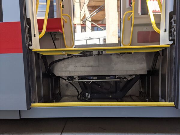 Так как система Muni Metro имеет и станции с высокими платформами и остановки на уровне улицы, все трамваи высокопольные и оборудованы опускающимися ступеньками, которые поднимаются при подъезде к высоким платформам.
