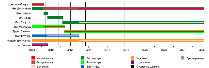 - Маршал Джиументи – ударные (2008—настоящее время), бэк-вокал (2013—настоящее время)