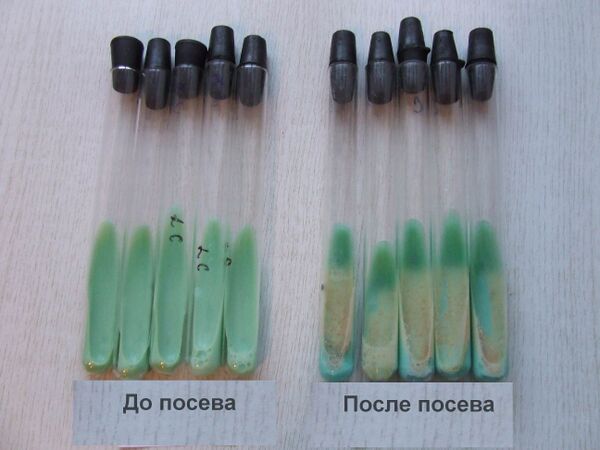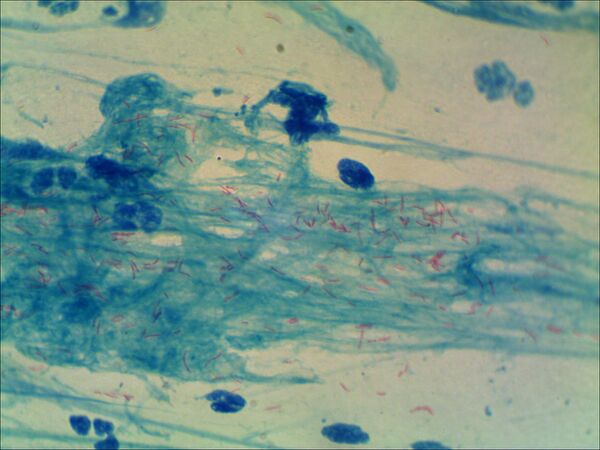 Нередко микобактерии растут в виде слизистых или морщинистых колоний. На жидких средах микобактерии могут расти на поверхности. Нежная сухая плёнка со временем утолщается, становится бугристо-морщинистой и обретает желтоватый оттенок. Бульон остаётся прозрачным, и добиться диффузного роста удаётся в присутствии детергентов (ПАВ). При окраске карболовым фуксином и метиленовым синим микобактерии туберкулёза выявляются в виде тонких, слегка изогнутых палочек малиново-красного цвета, содержащих различное количество гранул. Иногда можно обнаружить изогнутые или извитые варианты. Микроорганизмы, располагающиеся поодиночке, парами или в виде групп, хорошо выделяются на голубом фоне других компонентов препарата. Нередко бактериальные клетки могут располагаться в виде римской цифры «V». В препарате можно выявить также изменённые кокковидные кислотоустойчивые формы возбудителя, округлые сферические или мицелиеподобные структуры. В этом случае положительный ответ должен быть подтверждён дополнительными (культуральными) методами исследования[2].