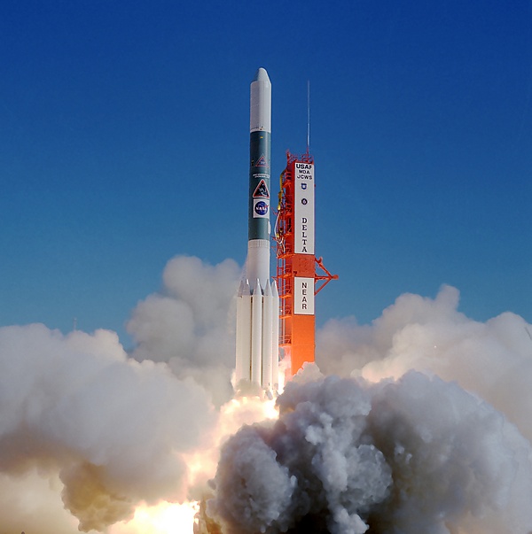 17 февраля 1996 года со стартовой площадки 17-B на мысе Канаверал во Флориде, с помощью трёхступенчатой американской ракеты-носителя «Дельта-2» 7925, был запущен «NEAR Shoemaker»[19]. На высоте около 183 км с наклонением 28,74° ракета вышла на парковочную орбиту. Период нахождения на парковочной орбите был сравнительно коротким (13 минут). Это говорит о том, что солнечная энергия начала использоваться через час после запуска.
