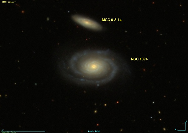 NGC 1094 (другие обозначения — UGC 2262, MCG 0-8-15, ZWG 389.16, IRAS02449-0029, PGC 10559) — спиральная галактика с перемычкой в созвездии Кит. Открыта Уильямом Гершелем в 1785 году. Описание Дрейера: «очень тусклый, маленький объект круглой формы, к западу видны две тусклых звезды»[4].