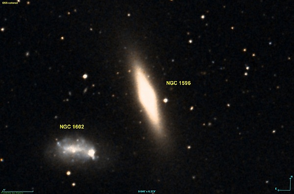 Имеет компаньона, карликовую неправильную галактику NGC 1602. В центре NGC 1596 был обнаружен вращающийся ионизированный газ[4].