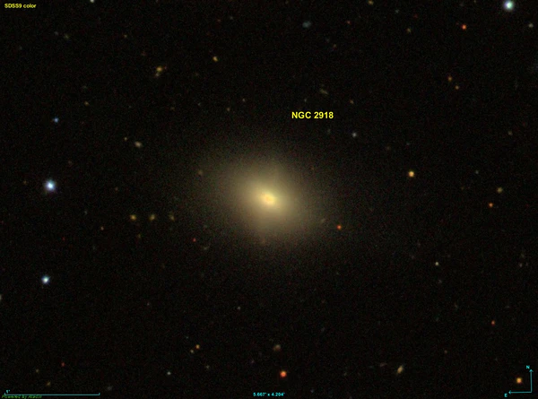 NGC 2918 (другие обозначения — UGC 5112, MCG 5-23-19, ZWG 152.32, PGC 27282) — эллиптическая галактика (E) на расстоянии 302 млн световых лет[4] в созвездии Льва. Открыта Уильямом Гершелем в 1785 году[5].