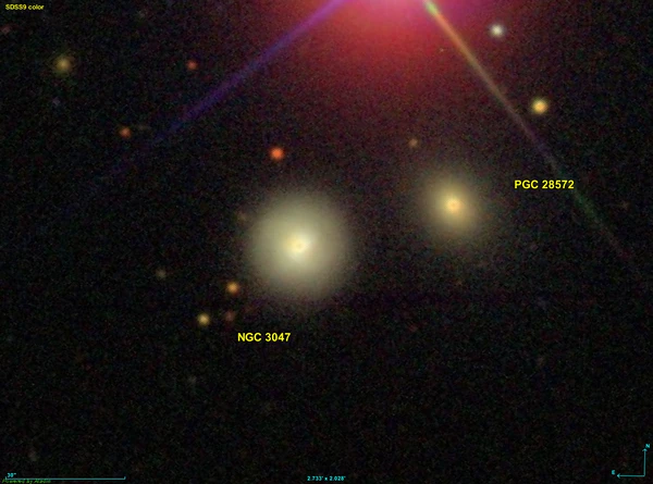 NGC 3047 — более яркая галактика в паре с галактикой PGC 28572, иногда называемой NGC 3047A или NGC 3047B, которая расположена в 1,1 минуте дуги к югу от звезды HD 85384. Первооткрыватели, описывая объект, никаким образом не упоминали наличие компаньона[2]. Однако в базе данных SIMBAD обозначение NGC 3047 относится именно к паре галактик[1][3].
