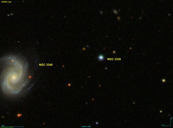 Этот объект входит в число перечисленных в оригинальной редакции «Нового общего каталога». Март наблюдал эту звезду в ту же ночь, что и галактику NGC 3340 и оставил описание, которое явно говорит о том, что это звезда; однако для NGC 3339 он ошибочно указал координаты, на небе близкие к NGC 3340. Хотя по вышеупомянутым причинам NGC 3339 явно соответствует другому объекту, чем NGC 3340, в базе данных SIMBAD эти два обозначения ошибочно отождествляются и указывают на галактику NGC 3340[1][2][3].