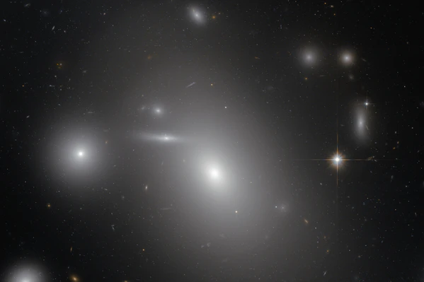 Наиболее яркая галактика скопления галактик Кома (или Волосы Вероники), находится возле центра скопления[4]. В центре галактики обнаружена[4][5] сверхмассивная чёрная дыра с массой около 21 млрд солнечных масс; измерения распределения скоростей звёзд вблизи от центра позволяют сказать, что масса чёрной дыры укладывается в диапазон 6—37⋅109 масс Солнца с доверительной вероятностью 68 %. Это первое обнаружение настолько массивной чёрной дыры, не являющейся квазаром. Для сравнения, масса чёрной дыры в центре нашей Галактики на 3 порядка меньше (4,3⋅106 масс Солнца).