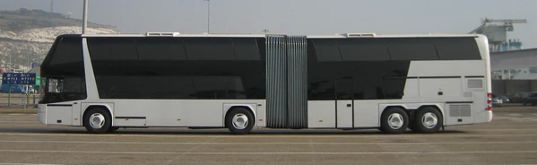 Neoplan Jumbocruiser является автобусом «особо большого класса» и в длину достигает 18 метров, в высоту — ровно 4 метра.