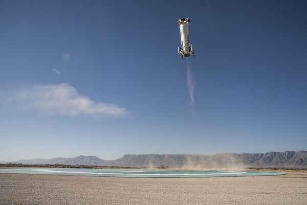 - Октябрь 2020 — ракета с грузовой капсулой поднялась на 106 км, после чего капсула и возвращаемая ступень разделились и приземлились по отдельности. Компания сообщила, что успешное испытание системы точной посадки НАСА, для достижения высокой точности посадки, позволит проводить длительные исследования Луны, а также будущие полёты на Марс. Эта миссия стала тринадцатой для системы New Shepard и седьмой для этой ракеты, но это был первый полёт с грузом, закреплённым снаружи, а не внутри капсулы.