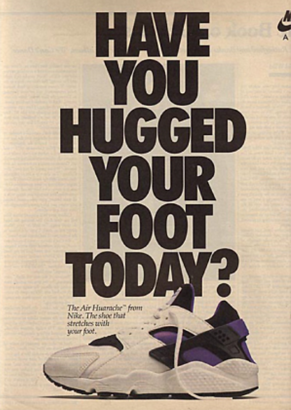 В рекламной кампании Huarache Nike использовала слоган «Have you hugged your foot today?» (рус. «Ты обнял свою ногу сегодня?»), подчёркивающим уникальную «обнимающую» посадку кроссовок. В 1992 году была выпущена баскетбольная версия — Nike Air Flight Huarache, которая приобрела известность благодаря команде Fab Five из Мичиганского университета, выступавшей на турнире NCAA 1992 года[2][4][6].