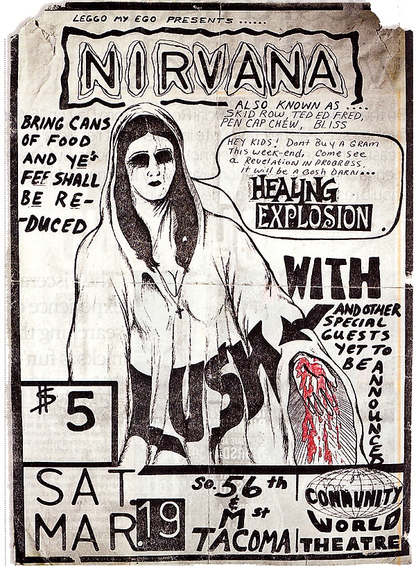 Через несколько месяцев Буркхард ушёл из группы, и его временно заменил участник The Melvins Дейл Кровер. При его участии были сделаны первые демозаписи. Кровера вскоре сменил новый барабанщик Дейв Фостер. За первые месяцы существования группа поменяла множество названий: «Skid Row», «Pen Cap Chew», «Bliss», «Windowpane», «Ed Ted Fred» и т. д. В конце концов, в начале 1988 года участники остановились на названии Nirvana, которое, как говорил Кобейн, было выбрано, потому что он «думал о названии, которое было бы красивым, приятным или милым, вместо грубого, грязного панк-рок названия, вроде Angry Samoans»[11]. Первое их выступление под этим именем состоялось 19 марта того же года в Community World Theater[12]. Через пару месяцев появился и постоянный ударник Чэд Ченнинг.